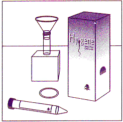 Hy-gene's second advantage offers substantial benefits to laboratory personnel. The handling of the condom is done only by the patient. A small scissor slice is made at the reservoir end of the condom. The patient then empties the contents through the system's funnel into the transport vial. The vial is sealed with a tight-fitting cap, and the funnel and condom are discarded. The patient applies the provided I.D. label and delivers the vial to the laboratory preferably within an hour, keeping the sample at near body temperature during transport.